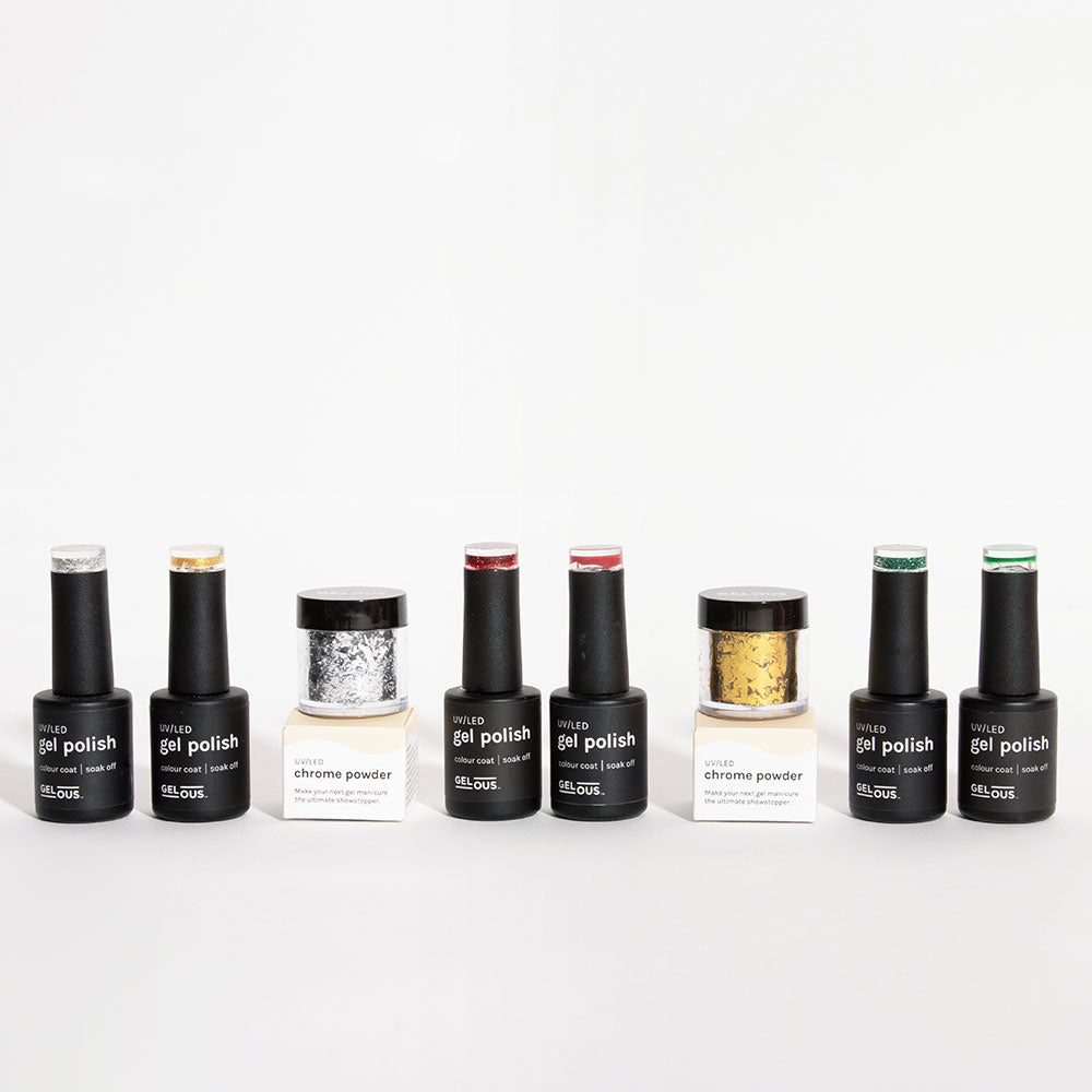 Choose 2 Christmas Colour Coats and your choice of a Metallic Leaf Foil or Mirror Chrome Powder for 10% off. Add extra sparkle to your holiday look by mixing and matching your favourite shades and finishes to design a manicure that shines as bright as the season.