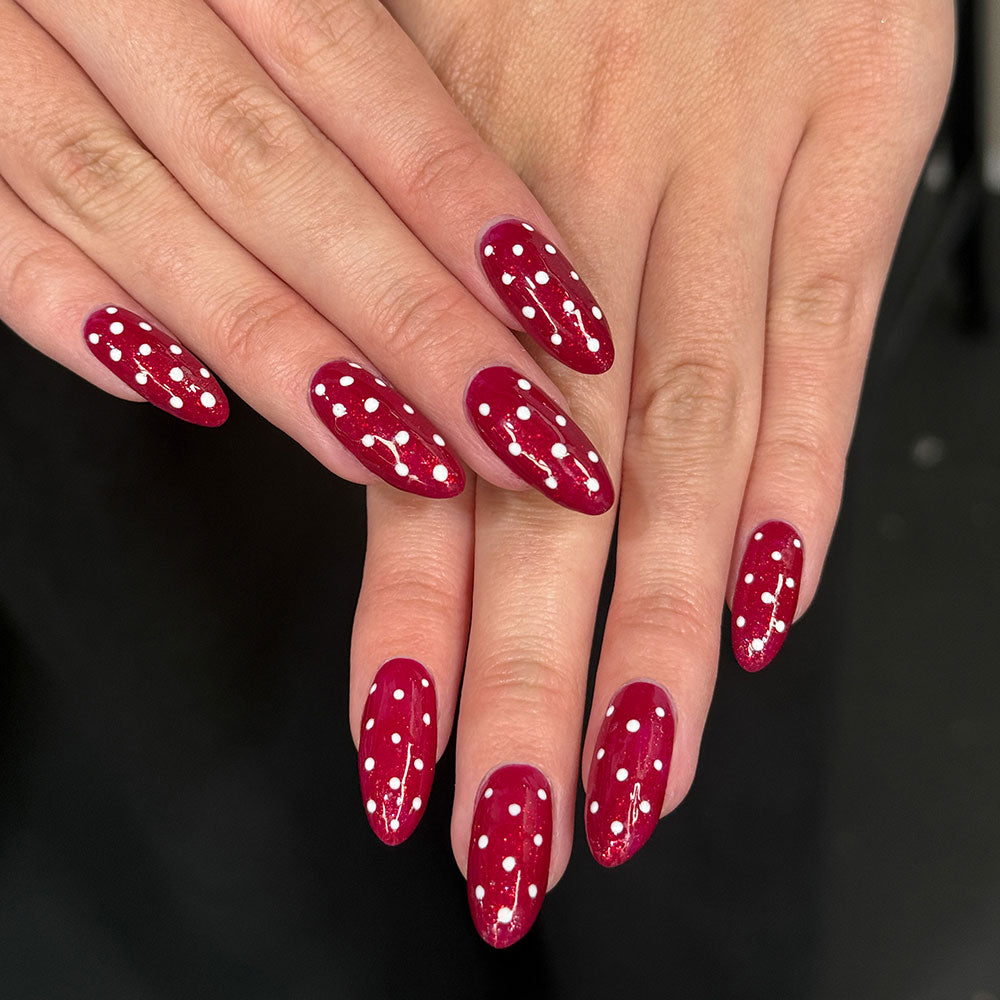 A sultry blend of rich berry-red and glimmering glitter, this show-stopper sets the night on fire. You'd better not kill the groove!