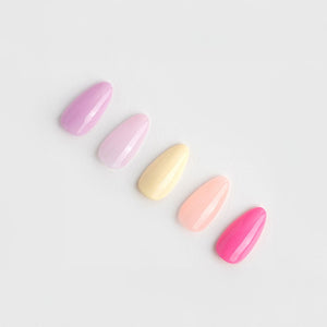• Tone:Buttercream - A creamy pastel banana yellow, Sugar Plum - A lilac-pink with a subtle shimmer and a cool undertone, Lollipop - A bright hot pink with a cool undertone, Macaron - A semi-opaque pastel pink with a purple undertone, Fizz - A sheer peachy-pink.